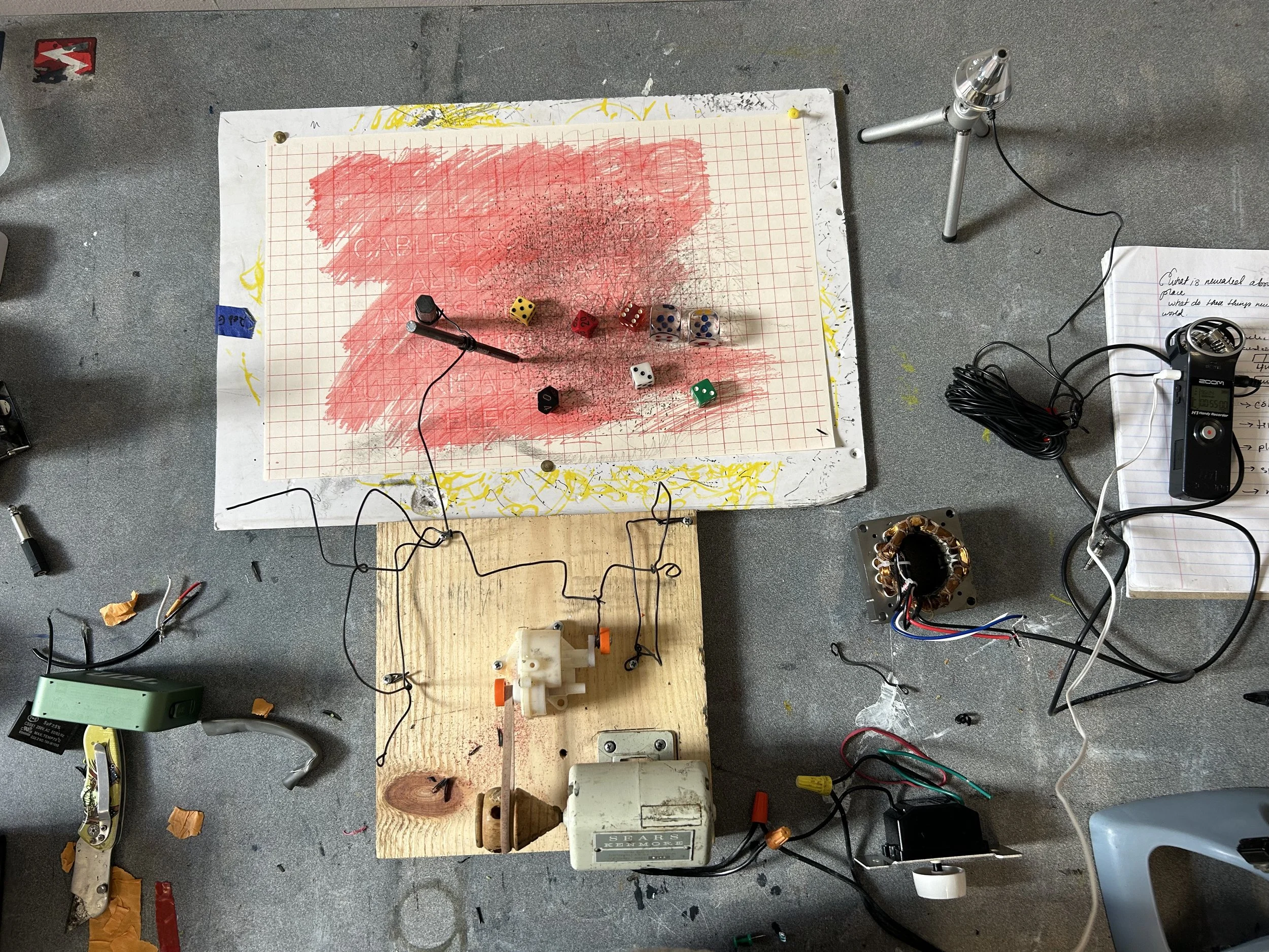 These machines represent a joyful assembly of liberated technology, freed from oppressive relationships and transformed into companions in play. They promote a culture of repair and innovative thinking, where creativity is driven by repurposing the forgotten. I control these machines using simple algorithms, like dice and coins, to generate binary instructions that directly influence their performance—determining their power consumption, placement, and longevity. In their unpredictability, they reveal new possibilities, inviting me to rethink the relationship between work and play, and between technology and human agency.